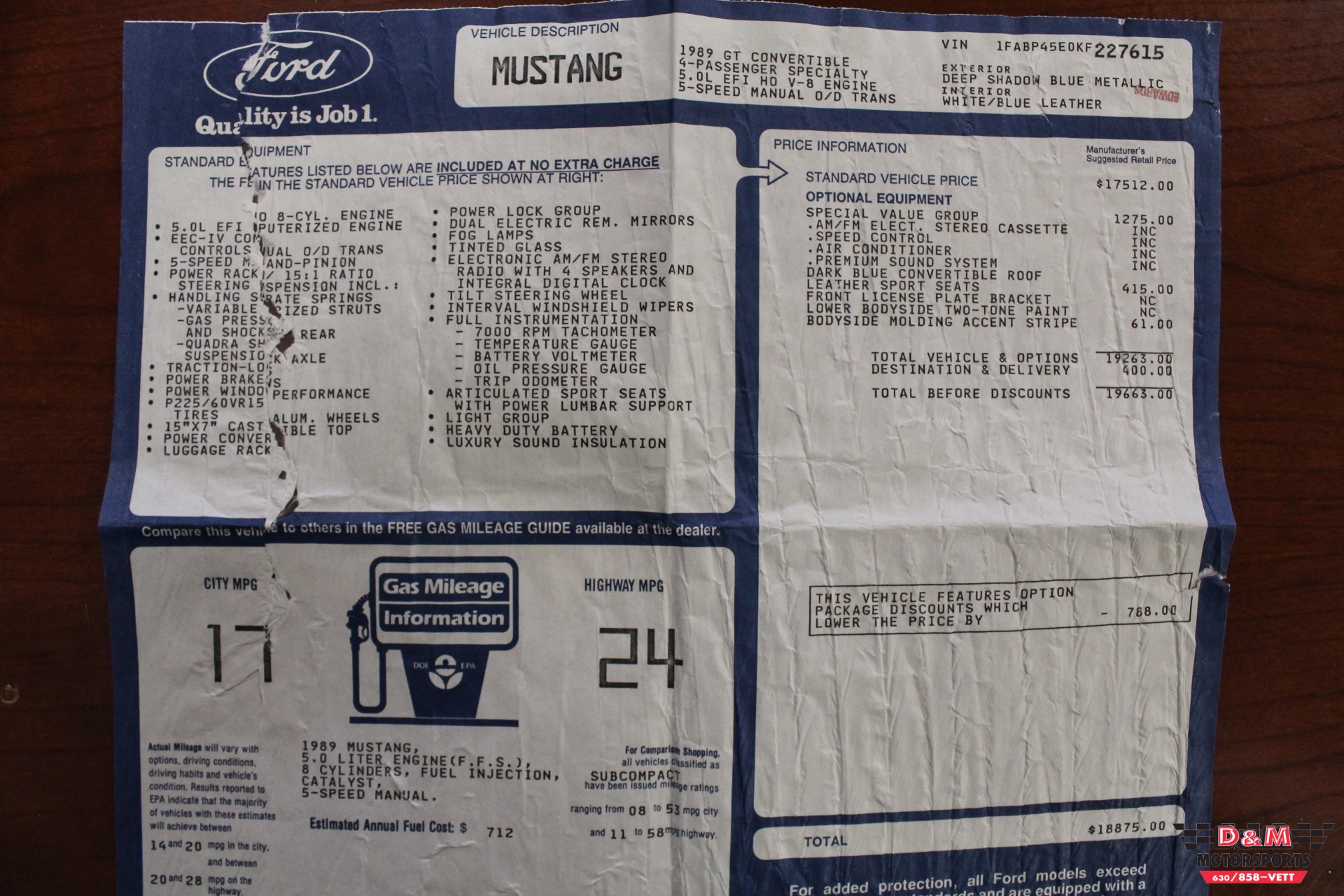 1989 Ford Mustang GT Convertible